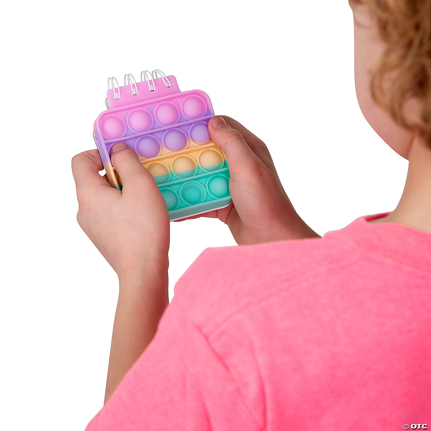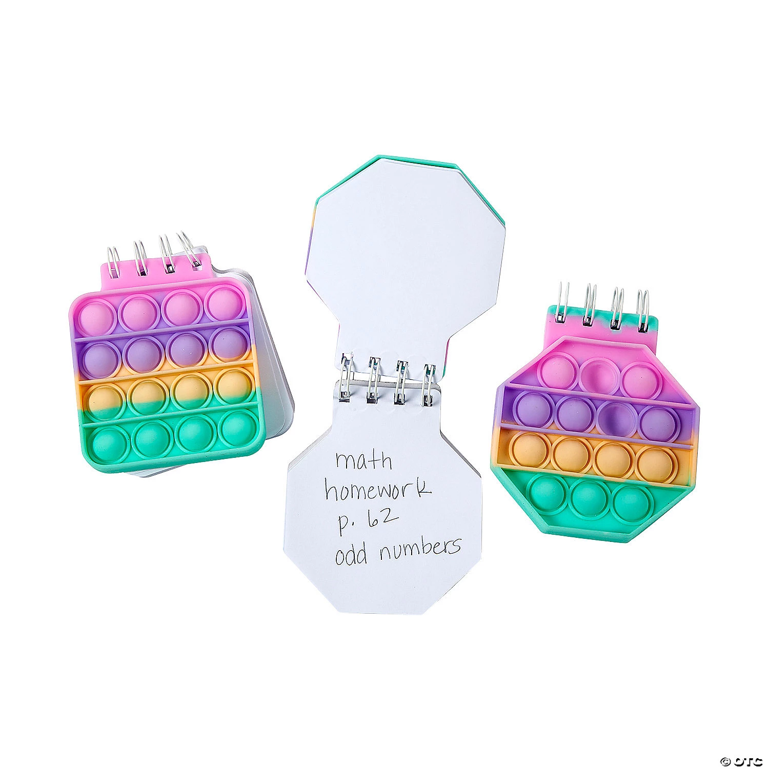 These colorful fidget toys have a bonus spiral notebook attached to them! Pop the fidget over and over and then take a break to write some small notes. The multi-color pop toy keeps fingers busy and boredom away and the notebook means paper is always on hand. Silicone and paper. 3″ x 4 1/4″ 40 blank pgs.