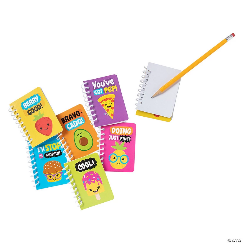 These mini notebooks lead to big time learning fun! Perfect for classroom rewards, each one features a friendly face of a food friend with a witty saying like “Doing Just Pine!” on the cover. Your students will think these are an absolutely delicious way to doodle, draw and write the day away! Paper. (2 dozen per unit) 2 1/2″ x 3 1/2″ 30 blank pgs. © OTC