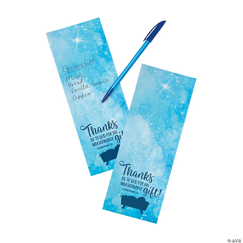 These notepads serve as a gentle reminder to give thanks for God’s greatest gift, both during the holiday season and all year long! Featuring a beautiful starry background, an inspiring Bible verse and an icon of baby Jesus in the manger, these notepads are great for capturing grocery lists, daily to-do’s and other important notes. They also make great Christmas gifts and stocking stuffers for fellow believers! Paper. 4 1/4″ x 11″ 30 pgs. © OTC