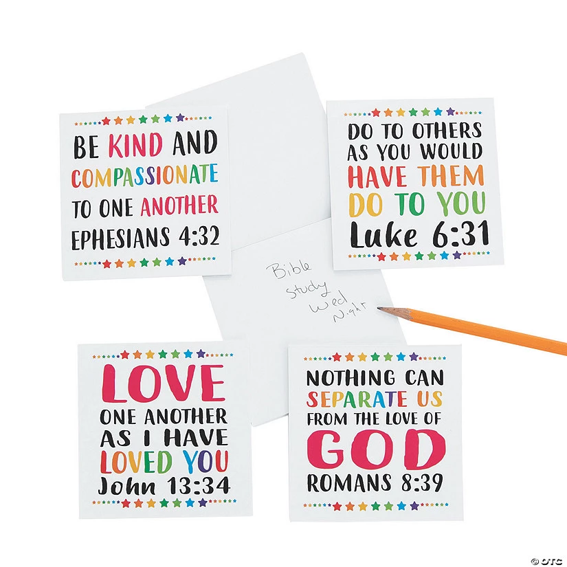 Inspire students to be kind with these colorful notepads! Featuring motivational Bible verses like, “Be kind and compassionate to one another,” these notepads make great Sunday School classroom incentives, church event prizes and other giveaways. Paper. (2 dozen per unit) 4″ x 4″ 30 blank pgs. © OTC