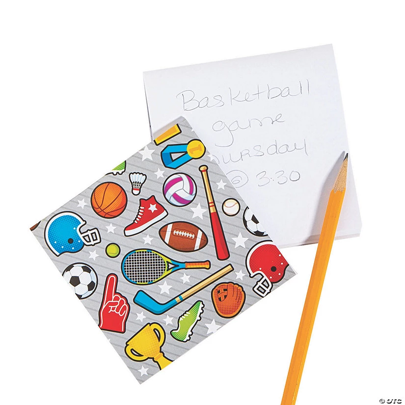 Looking for sports team prizes or gifts that are both fun and functional? These cute notepads feature sports images along with blank pages that are perfect for scribbling down stats or plays. Also great as party favors for a sports-themed party, these notepads are easily tucked into favor bags or handed out as guests leave. A good addition to the classroom treasure box, kids will love these sporty notepads! Paper. (2 dozen per unit) 4″ 25 blank pgs. © OTC
